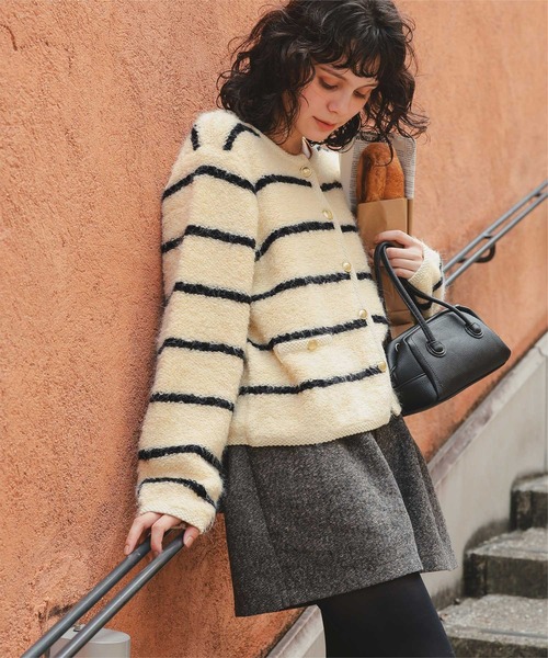 ★お気に入り登録13,000人突破★ツイード風の上品な編み地ときらっと光るゴールド釦が魅力の、きれいめにもカジュアルにも使える万能ニットカーディガン。■Point・ジャケットライクなデザイン:しっかりとした編み地とコンパクトなシルエットで、きちんと感のあるスタイリングが完成。・高見えツイード風ニット:プチループの編み地がツイードのような表情を演出し、上品でクラシカルな印象に。・ゴールドボタンがアクセント:フロントのゴールド釦が、顔まわりをパッと華やかに。■Coordinate・オフィスカジュアルに:テーパードパンツやフレアスカートと合わせて、きちんと感のある通勤スタイルに。・カジュアルダウンも◎:デニムやワイドパンツと合わせて、程よく抜け感のある大人カジュアルにも。・ワンピースに羽織って:フェミニンなワンピースにプラスすれば、きれいめミックススタイルが完成。気負わず着られるのに、上品に見える頼れる一着です。※当商品は機械による生産の過程上、どうしても"生地を織る際の糸の継ぎ目"や多少の"ほつれ"、他繊維の"混紡"、また、形やサイズや柄に多少の"誤差"が生じる場合がございます。※サイズは、実寸サイズを測っているため多少誤差がでる場合があります。製造工程の関係上、各採寸箇所実寸(平置き)より【約-3cm~+3cm】程度は誤差の許容範囲とさせて頂いておりますので、予めご了承くださいませ。※メーカーより密封状態で入庫し、検品時に再度袋詰めを行っておりますが、素材により染料等の臭いが強い場合がございます。※発送上の状態によって商品がシワになる場合がございます。※商品により色落ち・色移りがある場合がございますので、品質表示をご確認の上、お取り扱いにご注意くださいませ。【伸縮性】あり【透け感】なし