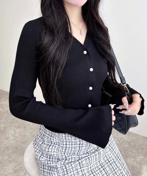 ★WEB限定アイテム★【これだけで大人っぽな韓国風コーデ叶う着回し抜群カーディガン】▼Design袖口に向かって広がるフレアスリーブデザインは腕の華奢見えを叶えてくれます。パールのころんとしたボタンとVネックのデザインは大人かわいいポイントに。 ボディにフィットするコンパクトなシルエットでスタイルアップを狙えます。トップス風な着こなしはもちろん、羽織りとしても着まわせます。きちんと感があるので普段使いはもちろん、オフィスシーンにもおすすめ。シンプルなデザインなのでどんなボトムにも合わせやすく、着回しも抜群です。▼Stylingパンツスタイルは韓国風のスタイリングでこなれ感抜群。ロングスカートとの合わせはフェミニンムードのきれいめコーデに。ベーシックなデザインなので、オフィスシーンでも活躍間違いなし。・ニット製品のため生地に伸縮性があり、サイズに若干の誤差が生じる場合がございます。予めご了承くださいませ。【以下アイボリー参考。カラーにより多少の誤差あり】・透け感:やや透ける・伸縮性:あり・生地の厚さ:普通・裏地:なし▼Recommend・カーディガン・トップス・フレアスリーブ・華奢見え・大人かわいい・フェミニン