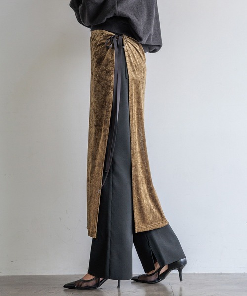 巻くだけで季節感のでるトレンドアイテムーーー★おすすめポイント★[1]ベロア調メッシュ素材で秋先取り[2]手持ちのパンツに巻くだけで、今っぽさUP[3]スタイリングのアクセント使いにオススメ[4]縦長ラインでスタイルアップーーー[fabric]ベロア調のメッシュ素材で、気温が高い時期から無理なく秋を先取りできます。[design]春夏から継続トレンドのラップスカート。デニムやワイドパンツにプラスするだけで、トップスが夏の装いでも無理なく秋を感じさせる便利アイテム。グログランテープで巻くだけの、フリーサイズ展開。[styling]デニムやフレアパンツなど、手持ちのボトムに上から巻くだけで、簡単にスタイリングをアレンジできます。【同素材のベロアシリーズのアイテムはこちら】【HEREIAM】メッシュベロアノースリプルオーバー(593595)【HEREIAM】夏トップス合わせで秋を先取り!メッシュベロアスカート(593602)※屋外での撮影画像は光の加減で実際の商品より明るく見えたり、風合いが異なって見える場合がございます。 商品の色味はスタジオ撮影の画像を参考にして下さい。素材の特性上、ブラックについては色落ちしやすい商品です。以下の点にご注意ください。・白や淡色のアイテムと合わせると、摩擦により色移りします。洗濯を繰り返すことで軽減されますが、購入後すぐの着用は濃色とのコーディネートをおすすめします。また、ソファーや車のシートなどとの摩擦にも、1枚布を挟むなどしてご注意ください。・洗濯は他のものと一緒に洗わず、単体洗いをしてください。・スカートについては、裾との摩擦により白いシューズに色移りする場合がございます。-------------------------------------≪お買い物をよりお楽しみいただくために≫◆商品のお気に入り登録(ハートマークをクリック)完売カラーの再入荷通知や、完売間近の通知、セールの通知も受けることができます。◆ブランドのお気に入り登録新商品や再入荷など、いち早くブランドのお得な情報を受け取ることができます。-------------------------------------