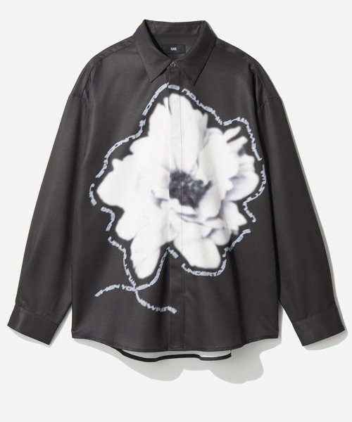 ーーー フラワーフォトモチーフとレタリングを融合させた存在感を放つデザイン マットな質感でモードに仕上げた主役になるデザインシャツ ーーー DESIGN 大胆なフラワーフォトモチーフをフロント全体にプリントし、輪郭に沿うようにレタリングモチーフを融合させた個性派デザイン。 単なる花柄とは異なるグラフィックと構築性が合わさったモダンでエッジの効いたデザインで一枚で決まります。 プリントはモノトーンカラーをベースとしており、派手過ぎず洗練された雰囲気を演出。 比翼ボタンになっており、プリントが強調して見えるため存在感をアップさせます。 マットな表情にわずかなツヤを出した高級感のある見え方の表面感で上品な印象に。 MATERIAL ポリエステル100%を使用しており、程よい厚みとハリ感を持ち合わせており、輪郭を美しく引き出します。 立体感を演出するため、一枚着でも羽織りとしても綺麗なシルエットをキープして着用できます。 滑らかで綺麗な表面感で、シワになりづらいためお手入れも簡単〇