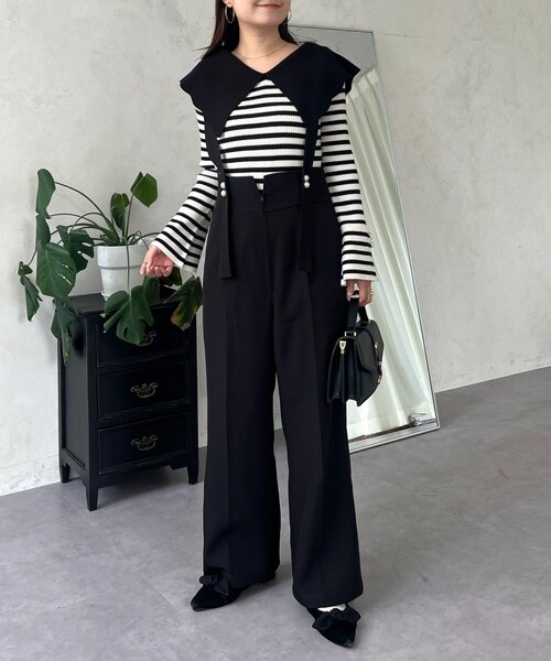 スタイルアップするサス付きパンツ ●ハイウエストで脚長効果◎ ●合わせるトップスによって様々なシーンで活躍 ●パールがアクセントに ●ゆったりとしたシルエットで着心地◎ ●3段階で長さ調節可能 サスペンダー/ハイウエストパンツ/きれいめ -------------------------------------------------------------- 生地の厚さ:普通 伸縮性:バックウエストゴム部分のみあり 透け感:なし 裏地:なし 洗濯方法:ご自宅で手洗い可 -------------------------------------------------------------- ※商品画像はサンプルにて撮影をしておりますので、 実際の商品とは色味や仕様・サイズ等が異なる場合がございますので あらかじめご了承ください。 ※商品のお取り扱いに関しましては、商品に付属の アテンションカード、洗濯ネームをご覧ください。 ※撮影場所やお使いのモニター環境により若干お色味が 異なる場合がございます。 特にロケの撮影では明るく見える傾向にございます。 ※サイト上ではフリーサイズの表記ですが、商品タグには Mサイズと表記されている場合がございます。 その場合、ワンサイズでのご用意となりますのでサイズミス などではございません。詳しいサイズはサイズスペックを ご確認いただきますようお願い致します。 ※サイト上でのカラー名とお届けした商品に記載されている カラー名が異なる場合がございますので予めご了承ください。 <返品・キャンセルについて> ・着用・洗濯後の返品は致しかねます。 ・商品到着後、着用前に商品を確認して頂きますようお願い致します