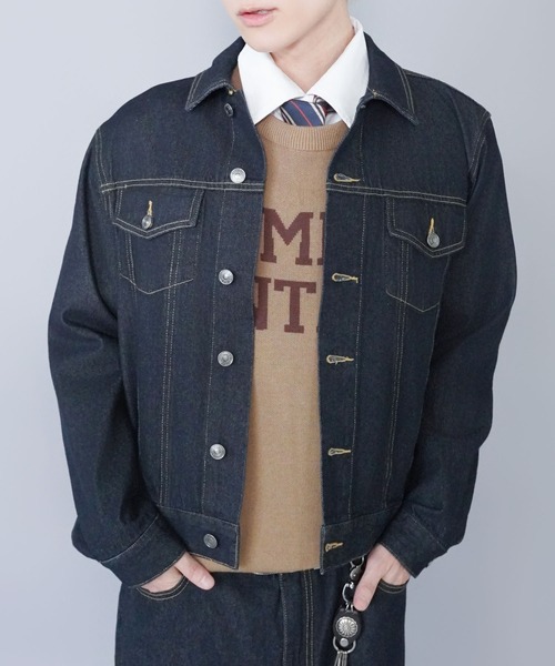 【セットアップ対応品番】H0403-387ヴィンテージライクセミワイドデニムパンツ(ユニセックス)ブラック・ネイビー・ワンウォッシュの3カラーと、同素材で仕上げたアイテムのため、セットアップでの着用が可能です!【DESIGN】王道のデニムジャケット(Gジャン)3rdタイプを、トレンドの短丈シルエットでアレンジ。すっきりとした着丈が、今季注目の「短丈×ワイドボトム」スタイルに相性抜群です。さらに裾には調節ボタンを配置し、シルエットを絞ってスッキリ着たり、少し広げてラフに着たりとアレンジ可能。ユニセックス仕様で、メンズはもちろんレディースの古着コーデやストリートスタイルにもハマる万能アウターです。【FABRIC】丈夫で程よいハリのあるデニム生地を使用。着込むほどに馴染むので、経年変化も楽しめます。秋はロンTやシャツの上に羽織ってライトアウターとして、冬はスウェットやフーディをインナーに仕込んでレイヤードスタイルを楽しめます。長いシーズン活躍する、デニムジャケットの新定番です。※掲載画像(商品、モデル着用とも)につきまして、撮影環境やお客様の閲覧されますパソコンや携帯電話キャリアによって、実際の商品とは多少異なった色に見える場合があります。また表示のサイズ感も実物とは若干異なる場合もございますので、予めご了承ください。※タグ・バーコードのついたシールには、サイトのご案内と異なるカラー名が記載されていることもございます。ご了承ください。- - - - - - - - - - - - - - - - - - - - - - - - - - - -【「お気に入り登録」でお得な情報が届きます】・「商品のお気に入り登録」で再入荷通知、ラスト1点の通知、セール通知などを受け取ることができます。・「ブランドのお気に入り登録」で新商品、人気アイテムの再入荷など、お得な情報を受け取ることができます。- - - - - - - - - - - - - - - - - - - - - - - - - - - -