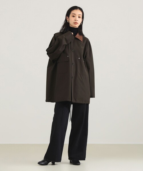 軽やかに羽織る都会顔アウター■デザインステンカラーコートをベースに仕立てたクレリックブルゾン。襟元の配色デザインが目を惹き、シンプルながらもモードな存在感を放ちます。ゆとりあるフォルムで、旬な抜け感を演出できる1着です。■コーディネートデニムやワイドパンツと合わせてカジュアルに、タイトスカートやワンピースに羽織ってフェミニンなスタイルに。オンオフ問わず取り入れやすく、秋冬のワードローブの即戦力になるアイテムです。■ディテール実用性を高める大きめのポケットを多数配置。裾のドローコードでシルエットを調整でき、気分やコーディネートに合わせてアレンジが可能です。ボタンや配色のアクセントがモダンな印象を引き立てます。■サイズゆとりのあるシルエットながら、長すぎない着丈でバランスよく着こなせます。■素材リサイクルポリエステルとオーガニックコットンを高密度に織り上げたサステナブルなシェルタフタ素材を使用。撥水加工も施されており、日常の天候変化にも対応可能。軽やかでハリのある質感が魅力です。■ケア方法ドライクリーニング(詳細は商品についている品質表示ラベルをご覧ください)Model:H165 Size:ONE SIZE※光の当たり具合やパソコンなどの閲覧環境によって実際の色味と異なって見える場合がございます。予めご了承ください。※商品の色味は商品単体で撮影した画像をご参照ください。VACHEMENT / ヴァシュモン2019年にスタートした日本のアウターブランド。「手が届く上質。日常で感じるエレガンス」をコンセプトに各分野のプロフェッショナルが集い、その審美眼と経験、技術から生み出される、手が届く本物を提案。等身大の自分に寄り添いながら、心地よい感動をあたえるブランド。