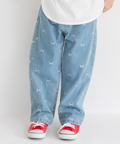 リボン刺繍がポイント♪ ゆるっと可愛いテーパードデニム ■商品ポイント 全体にリボンの総柄刺しゅうをあしらった、 ほんのり甘さ香るデニムパンツが登場! テーパードシルエット&ゆるめのサイズ感で、 抜け感のあるカジュアルスタイルにぴったり◎ 動きやすく、合わせやすい万能アイテムなので、 普段使いからちょっとしたお出かけまで活躍します♪ ※ブルーカラーの色差についてこちらの商品のブルーカラーはデニムに加工を施しているため、仕上がりに多少の色差が出ます。 ----- 透け感:なし 伸縮性:なし ポケット:あり ※モデル着用写真についてはイメージの為、実際の 商品とカラーや仕様が異なる場合がございますので、 商品画像をご覧ください。 ※商品の色味につきまして、お客様のお使いのPCの モニター環境により実際のカラーと画像の色味が 違って見える場合が御座います。 予めご了承の上、ご注文下さい。 ※店頭・外での撮影画像は光の加減で、 実際の商品より明るく見える場合が御座います。