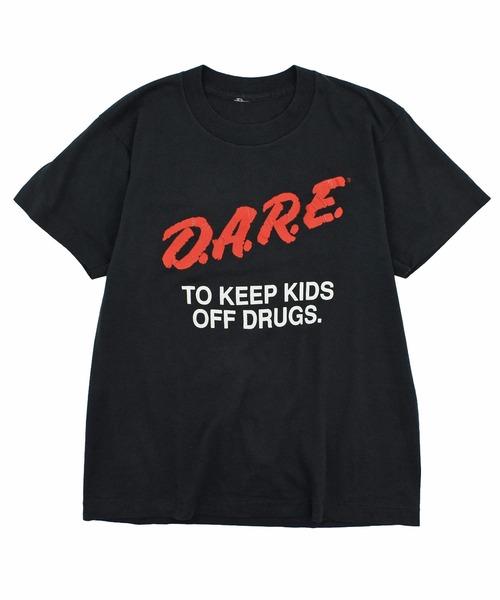 ※こちらはヴィンテージ商品となります。 下記のattentionをご確認の上、ご購入下さいますようお願いいたします。 --------------------------------------------------------- コンディションランク:B ■size タグ表記:-- 実寸:48cm/42cm/59cm/16cm(身幅/肩幅/着丈/袖丈[ゆき丈]) ■condition 色褪せ/毛羽立ち/黄ばみ/汚れ/スレ/毛玉/ヨレ/糸ほつれ/小穴/破れ/ピンホール/着用感 ■point アメリカで1980年代から展開されていた薬物乱用防止プログラム「D.A.R.E.(Drug Abuse Resistance Education)」のスローガンがプリントされた90年代のTシャツ。 黒ボディに赤と白のメッセージロゴが大きく映え、当時の社会的ムーブメントを象徴する1枚です。 タグは欠損していますが、袖・裾ともにシングルステッチの縫製仕様から90年代のディテールと判断できるアイテム。 程よく色褪せたコットンボディが古着らしい風合いを演出しています。 ストリートやグランジスタイルの外しとしてはもちろん、デニムやミリタリーパンツと合わせても雰囲気のある着こなしに仕上がる1着。 古着ならではのこなれた風合いを楽しめるコンディションです。 ■Vintage clothing store【LABORATORY®】 原宿に店舗を構える老舗Vintage Clothing Store。 バンドTシャツを中心に、独自のセレクトで個性的なアイテムを取り扱っています。 ZOZOTOWN STOREでは、現行のファッションにも馴染みやすく、古着特有の独特なムードやコンディションを気軽に楽しんでいただけるアイテムを提案いたします。 加工等では味わえない“リアル”な古着をお楽しみ下さい。 --------------------------------------------------------- ■attention ※こちらはヴィンテージ商品のため1点ものです。 交換・修理はいたしかねます。 ヴィンテージ商品につき、どちらの商品にも多少のシミ・ダメージ・使用感がございます。 このようなヴィンテージ商品の性質を十分ご理解いただいた上で、ご注文くださいますようお願いいたします。 商品状態につきましては詳細にお伝えするよう努めておりますが、細かな点の表記には限りがございます。 画像につきましても、実商品の色味に近しいものを掲載するよう心がけておりますが屋内での撮影のため、多少の誤差が生じる場合がございます。 また、ご覧のモニター環境により、画像の色味と多少異なる場合がございます。 どうかご理解いただきますようお願いいたします。 ※コンディションランク コンディションランクは当店の主観により判断しておりますので、あくまで一つの目安とお考えいただき、商品の写真や説明文と併せてご参照ください。 軽微なダメージや薄い汚れ、多少の色褪せなど、USEDの使用感の範囲内と判断したものは説明を省いている場合がございます。 S:未使用または新品の商品など A:使用感が少なく、かなり状態が良いなど B:使用感はあるが、傷や汚れが少ないなど C:使用感の他、傷や汚れが見られるなど D:かなり大きな傷みがある難ありなど --------------------------------------------------------- お気に入り登録のオススメ ▼商品のお気に入り登録▼ 再入荷、残り1点、セールなどの通知を受け取ることができます。 ▼ブランドのお気に入り登録▼ 新商品や再入荷、ショップのおすすめトピックスなど、いち早くブランドの情報を受け取ることができます。 ---------------------------------------------------------