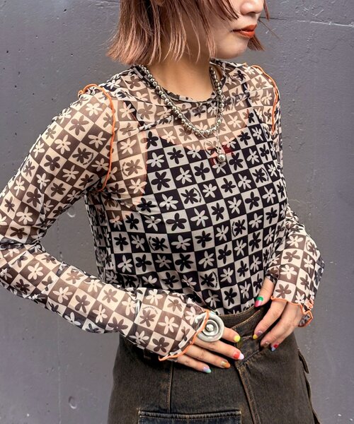 1枚でもレイヤードでも可愛いフラワーシアートップス▼ポイント繊細なフラワー柄をプリントした、透け感のあるシアートップス。程よくフィットするサイズ感と、主張しすぎない透け感で、甘さと抜け感のバランスがちょうどいい一枚です。配色のメローや袖元の刺繍がコーデのアクセントに。シンプルなキャミワンピやTシャツのインナーに差し込めば、さりげなく今っぽいレイヤードが完成します。▼スタイリングキャミワンピやTシャツの下に仕込んで、レイヤードのアクセントに。デニムやカーゴでカジュアルダウンすると、甘さとラフさのバランスが絶妙に。---------------------------------------------------透け感:あり伸縮性:あり裏地:なし光沢:なし---------------------------------------------------家庭洗濯:30℃限度/洗濯機[非常に弱い]タンブル乾燥:不可アイロン:不可クリーニング:ドライクリーニング不可、非常に弱い処理によるウェットクリーニング可---------------------------------------------------【HELLO.SANFRANCISCO/ハローサンフランシスコ】西海岸を代表するサンフランシスコ。年中暖かく、穏やかでフレンドリーな都市。少し懐かしさを感じる柄やアイテムを今の女の子に向けて提案。メンズライクな素材を女の子が着るシルエットに落とし込んだアイテムなどトレンドに敏感でいろんな気分に合わせて、服を選ぶ女の子のためのシリーズ。---------------------------------------------------※着用、お取り扱いの際は、商品についている品質表示とアテンションタグを必ずご確認下さい。※画像の商品はサンプルです。実際の商品と仕様、加工、サイズが若干異なる場合がございます。※可能な限り実物に近いカラーにて掲載していますが、撮影環境やモニター環境などにより製品と画像のカラーがやや異なって見える場合もございます。予めご了承ください。【お買いものをよりお楽しみいただく為に!!】▼商品のお気に入り登録(ハートマークをクリック)お気に入りアイテムの完売カラーの再入荷通知や、ラスト1点の通知、セールの通知も受け取ることができます。▼ブランドのお気に入り登録新商品や再入荷、クーポン配布などのお得な情報を受け取ることができます。