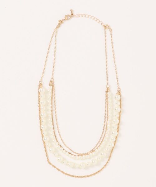 上品さとトレンド感を兼ね備えた3連パールネックレス。 異なるサイズのフェイクパールと繊細なゴールドチェーンを組み合わせた、華やかな3連デザインが目を惹くネックレス。 レイヤード風のデザインが、これ一つでコーディネートに奥行きを与えてくれます。 フェミニンなブラウスやワンピースにはもちろん、Tシャツなどのカジュアルスタイルにプラスしても、大人っぽいこなれ感を演出。 アジャスター付きで長さ調整も可能なので、スタイリングに合わせたアレンジも自在です。 ~~ZOZOTOWNでお買い物を楽しむ便利機能~~ ♡商品のお気に入り登録 完売カラーの再入荷時、ラスト1点の時、セール開始時に通知でお知らせします。 予約アイテムが入荷して通常販売になった時もお知らせしてくれます! ♡ブランドのお気に入り登録 新商品や再入荷、セールやクーポン情報など、 ブランドのお得な情報をいち早く受け取ることができます! ~~~~~~~~~~~~~~~~~~~~~~~