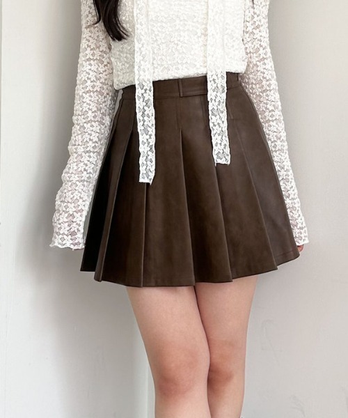 ■レザーボトムで秋を先取り■ 甘すぎずカジュアルにも着こなせるレザー素材のミニスカート。 SとMの選べる2サイズ展開です。 ウエストベルトデザインでトップスをインしても可愛く、サイズも微調整可能。 裏地はパンツになっているので安心感のある履き心地です。 綺麗なプリーツで美脚効果も◎ ジャケットやロングブーツと合わせた、秋らしい大人可愛いスタイリングがおすすめ♪ ーーーーーーーーーーーーーーー 透け感:なし 裏地:あり 伸縮性:なし 光沢感:なし 生地厚さ:普通 洗濯方法:洗濯可 ※詳しいお手入れ方法は商品についているタグをご覧ください ーーーーーーーーーーーーーーー ※ご利用のモニター環境により、実際の色味と多少異なる場合がございます。 … information … 欲しいitemをお気に入り登録(♡マークをclick) ・お買いのがし対策…完売itemの再入荷やラスト1点の情報をお知らせ ・欲しいitemをお得にget…pricedownになったらいち早くお知らせ ・スムーズ検索…ZOZOのお気に入りアイテムページで簡単checkできるから、再検索不要♪