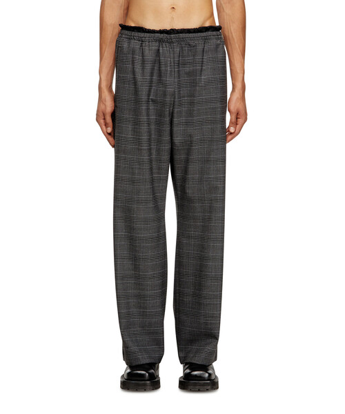 ソフトテーラリングストーリーのフルレングスパンツ「P-TILSON」。本体にウールベースのグレンチェック地、ウエストバンドにナイロンサテンを組み合わせた新しいディテールで、ディーゼルらしいひねりを感じられる一本です。ウエストはフィットの調節ができるドローストリング仕様。ライトウェイトな生地感なので、クラシカルな見た目を楽しみながら軽くてストレスフリーなはき心地を実感できます。