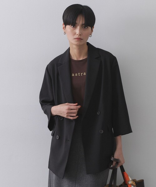 夏の冷房対策から、秋口の羽織りとしても!軽やかにまとえるシアージャケット【デザイン】・シアー素材を使用し、裏地なしのライトな着心地が魅力のシアージャケット。・ひじ下の袖丈で、袖幅もやや広めに設定しているため、夏~秋口にかけて涼やかに羽織れる一枚です。・ベーシックなダブルデザイン、後ろにはベンツ入りで、程よいきちんと感のあるデザインがポイント。・通勤などのきれいめスタイルにはもちろん、デニムやワンピースなどカジュアルなアイテムに合わせても楽しめる一枚です。【素材】・麻調でややシアー感のあるポリエステル100%素材を使用しており、軽やかにまとえる素材感です。・ハンドウォッシャブルなのでご家庭でお手入れ可能です。【仕様】・裏地なし・ポケット数:前×2※照明の関係により、実際よりも色味が違って見える場合があります。また、パソコン・スマートフォンなどの環境により、若干製品と画像のカラーが異なる場合もございます。モデル情報:身長165cm B72 W57 H84 着用サイズ:38(M)店舗へのお問い合わせ商品番号:637-44025●製品寸法:38(M):着丈65cm B96cm 袖丈43cm 肩幅40cm40(L):着丈66cm B102cm 袖丈44cm 肩幅42cm42(LL):着丈67cm B108cm 袖丈45cm 肩幅45cm備考:重量:38(M)約265g