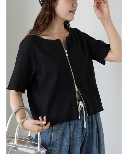 フロントのダブルZIPで雰囲気の変化を楽しめるカーディガン。表面に凹凸のあるテレコ生地を使用しており、肌触りの良さを演出します。ひらひらとしたメロー加工が可愛らしさをプラス。ファスナーを閉めてトップスのように着用した着こなしがおすすめです。※商品画像は、撮影環境やお客様のご利用のPC・スマートフォンのモニター環境などにより実物と色味に差異がある場合がございます。★《お気に入り登録》でお得な情報をGET★① 商品ページ内のハートマークをクリック!② 以下通知が受け取れます!「再入荷」「ラスト1点」「特別セール」etc..\ブランド、ショップのお気に入りも是非!/