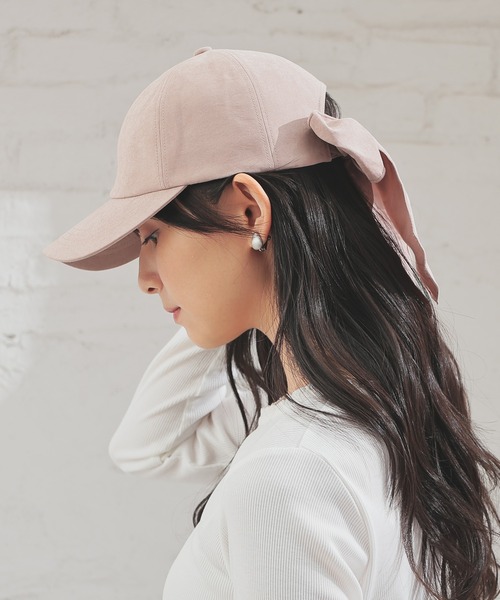 リボンでガーリーさをプラス♪【デザイン】カジュアルな印象のキャップながら、バックリボンがさりげなくガーリーなデザイン。【素材・機能】表面に微起毛のある、ツイル素材。リボンを結び直してお好みのサイズに微調整可能◎【スタイル】甘さを抑えたベーシックカラーで、フェミニンスタイルにもボーイッシュなスタイルにも、幅広く活躍。※サイズ調節可※湿度・摩擦により多少色落ちする可能性があります。※洗濯不可品番:281-127-9340