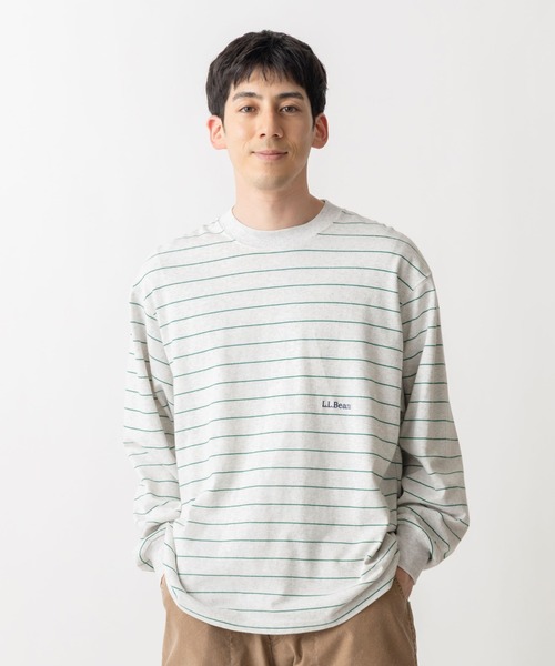 日本の気候やトレンドに合わせて日本のデザインチームによって開発されたJAPAN EDITIONコレクション。USAコットン100%製のラグビー・ジャージー素材を使用した長袖Tシャツ。80・90年代を彷彿とさせるどこか懐かしいストライプ柄に、さりげないL.L.Beanロゴ刺繍を添えました。製品洗い加工により着始めからソフトで着慣れた風合いを実現。無地に見える地の部分にも濃淡の細かなボーダーを取り入れることで、奥行きのある表情豊かなデザインに仕上げました。サイズ&フィット・全体にゆったりめのフィット・画像の男性モデル:身長179cm、Lサイズ着用(着用カラー:グレー系その他)素材&ケア方法・綿100%製・USAコットン100%糸を度詰めに編んだラグビー・ジャージーを使用・製品洗いにより、着始めからソフトで着慣れた風合いを実現・洗濯機の使用可・単品でお洗いください・水洗いで多少縮みます・生成り、淡色系の色物は無蛍光洗剤をご使用ください・つけ置き洗い、濡れたままの放置はしないでください・濃い色の場合は摩擦や濡れた際に他の物に色移りすることがあるため、白、淡色との着用にご注意ください・アイロン時はあて布を使用してください追加情報・首回りと袖口はリブ編み・左胸の低い位置にL.L.Beanロゴ刺繍入り・中国製
