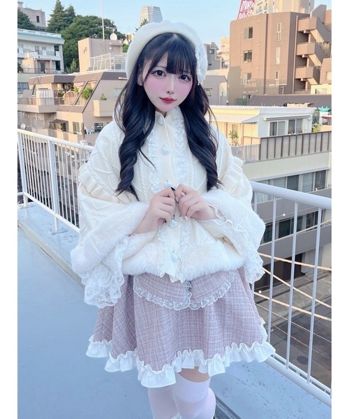 ふわふわのファーに包まれるたび、 まるでおとぎ話のうさちゃんになったみたい。 レースとリボンが重なる胸もとは、 甘い約束をそっと隠して、 背中に揺れるお耳は、小さな秘密をひらひらと抱きしめる。 胸もとで揺れるポンポンに心までくすぐられて、 ただ歩くだけで物語の続きを描いてしまう―― そんな女の子のための、甘くてロマンティックなポンチョ。 ♡リボン取り外し可
