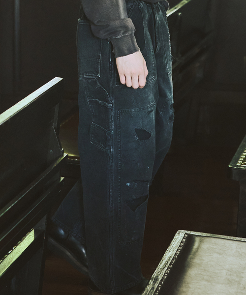 0404 ANACHRO*HS PAINTER"Not Found"── 見つからない価値を、あえてかたちに0404は、既存の文脈や過去の引用にとらわれず、まったく新しいヴィンテージ像を追い求める実験的なプロジェクトです。日本国内の職人の手によって一点ずつ丁寧に施されたハードウォッシュやダメージ加工は、過去にも未来にも存在しない“今”という時代を刻み込みます。クラフトマンシップとストリート感覚が交差する、未踏のスタンダードがここに誕生します。国産8号帆布を使用した、無骨で重厚感のあるワイドペインターパンツ。裏ダブルニー仕様により耐久性を強化しつつ、リペア感あるディテールで仕上げました。加工内容:硫化染料による製品染め+サンドブラスト+ストーンバイオウォッシュ+ハンドステッチ。※長時間の洗い加工により、ハーフサイズ程度の縮みがあります。※個体差があるため、加工感が写真と異なる場合があります。予めご了承ください。【ANACHRONORM / アナクロノーム】『The New Vintage for the Next Era』Anachronism(時代錯誤) + norm(基準) = ANACHRONORM例えば100年前に作られたデニム。時を経て、歴史を刻み、価値あるモノとして現在に残るVintage。大量に生み出されては消費される現代ファッションとの違いはどこにあるのか。人の手によるモノづくりから生まれる味わいか。長い年月をかけて加わる付加価値化か。それとも100年の時を経て今に残る希少価値か。ANACHRONORMは『次なる時代の新たなヴィンテージの創造』をコンセプトに、時を超えて伝え残すことのできるモノづくりを目指すレーベルです。【J.S.Homestead / ジェイ エス ホームステッド】アメリカンカジュアル・ヴィンテージウェアを熟知するからこそのノウハウを駆使し、時流を取り入れた商品を展開することで、その人の様々なシーンに対応できる ウェア、もしくは他者からの共感が得られ影響の与えられる現代的なスタイリング を提案するブランド。※取り扱いについては、商品についている品質表示でご確認ください。※照明の関係により、実際よりも色味が違って見える場合があります。またパソコン・スマートフォンなどの環境により、若干製品と画像のカラーが異なる場合もございます。※商品の色味は、商品アップ画像をご参照ください。本体:洗濯機洗い(弱)
