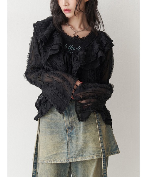 【ポイント】 トレンドのラッフルフリルデザインがかわいいレースブラウス。 レース素材で上級者っぽい抜け感もプラスできます! 肌寒い季節はもちろん、いつものコーディネートに合わせるだけでおしゃれに見えるアイテムです! 【スタイリング】 甘めなスカートにはもちろん、ハーフパンツなどカジュアルアイテムに合わせるとより今っぽい雰囲気に。 透けすぎないレース素材を使用しているので程よい肌見せができます! シンプルにTシャツやタンクトップに合わせるのがおすすめです。 ※着用画像はフラッシュの加減で実際の製品と色味等が異なる場合がございますので、生地のズームアップ画像をご確認ください。 ※ご利用の端末画面の設定により実際の商品と色味が異なる場合がございます。 ※正しいサイズはアイテムサイズ表をご確認ください。 ※商品のお取り扱いについては、脇についている洗濯ネーム類をご確認下さい。【jouetie ZOZOTOWN お買い物ガイド】▼商品をお気に入り登録!♡をクリック!完売商品の再入荷やラスト1点の通知、セール開始時にお知らせ!▼"jouetie(ジュエティ)"をお気に入りブランドに登録!新商品や再入荷など、ブランド最新情報をいち早くお知らせ!