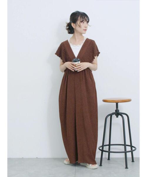 シボ感のある楊柳生地がさらりとした着心地を演出するロンパース。パンツ部分はゆったりめなワイドシルエットになっており、気になる体型をカバーしてくれます。ショルダーのシャーリング切り替えがポイント。合わせるトップスによって印象の変化を楽しめるアイテムです。※商品画像は、撮影環境やお客様のご利用のPC・スマートフォンのモニター環境などにより実物と色味に差異がある場合がございます。【その他採寸】 F ウエスト:[ゴム仕様]88cm ★《お気に入り登録》でお得な情報をGET★① 商品ページ内のハートマークをクリック!② 以下通知が受け取れます!「再入荷」「ラスト1点」「特別セール」etc..\ブランド、ショップのお気に入りも是非!/