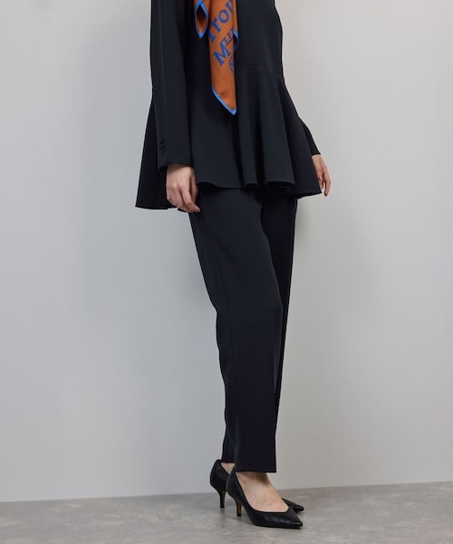 【デザイン・シルエット】 センタープレスが入ったすっきりとしたシルエットのテーパードパンツです。素材にストレッチ性があり、ベルト脇にさりげなくゴムを入れているため、イージーな着心地で着用いただけます。ラインをシャープに見せる美しいシルエットで、ウエストゴム仕様により動きやすく、サイズ変動にも対応しやすいのも嬉しいポイントです。 セレモニー、マザーニーズ、お仕事など幅広く活躍する汎用性の高いアイテムで、同素材のジャケット、パンツ、ワンピース、スカート、ブラウスとの様々な組み合わせが可能なシリーズです。 【おすすめのスタイリング】 同素材のジャケットやペプラムブラウスとのセットアップスタイルはもちろん、ツイードジャケットや、単品使いでボウタイブラウスなどきれいめブラウスを合わせるのもおすすめです。 【素材】 トリアセテートの平二重組織で、ドライタッチ・ふくらみ感・落ち感が際立つ素材に仕上げています。トリアセテート特有の発色性の高さにより、深みのある色合いと高級感を演出するダブルクロス素材です。イージーケアできるのも嬉しいポイント。 通年着やすく、セレモニーやお子様の行事、通勤・お仕事にもおすすめです。 ---------------------------- 透け感:なし 裏地:なし 伸縮性:ややあり 光沢感:なし 生地の厚さ:中肉 ポケット:あり 開き方:ホック 洗濯:手洗い可能 ---------------------------- 【モデル情報】 Atsukoさん身長:175cm 着用サイズ:38 モデル身長:166cm 着用サイズ:38 【着用シーン】 学校行事:セレモニー*、入園式*、卒園式*、入学式*、卒業式*、説明会、学校行事*、授業参観日*、受験 冠婚葬祭:フォーマル*、同窓会*、食事会*、発表会*、顔合わせ*、ご挨拶*、七五三*、お宮参り* ビジネス:オフィス*、お仕事*、通勤*、入社式、面接、面談 *がおすすめの着用シーンです。 おすすめの着用シーンだけではなく、ロペのセレモニーシリーズはセレモニーはもちろん、フォーマル・オフィスといった、幅広いシーンで着用できるようになっております。 また、単品でもコーディネートがしやすく、シーンに合わせて様々なインナーと合わせられる、シンプルで着回しができるデザインです。 新生活や一生に一度の大切なハレの日を、ROPE'のセットアップシリーズでお迎えください。 ※画像の商品はサンプルです。実際の商品と仕様、加工、サイズが異なる場合がございます。 ※撮影場所やライティング、お使いのモニター環境によって色の見え方が異なる場合がございます。 ※商品のカラーは画像の色味をご参照ください。動画は仕様説明のため、色味が実物と異なる場合がございます。