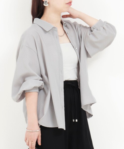 ◇25AW◇ MICO COULIER 抜け感シャツで季節先取り パンチングブラウス ◆Point ・シックな色合いのパンチングシャツブラウス ・ライトタンブラー素材でさらっと涼しく、長く着回せる ・パンチングデザインが抜け感を演出し、重たく見えない ・手首を華奢に見せる8分袖&袖口ギャザーで女性らしい印象 ・後ろヨークはゴムシャーリングで、動きやすい&後ろ姿もさりげなく可愛い ・ドロップショルダー&ゆったりシルエットでこなれ感UP ・上品なコロンと丸いメタルボタンがアクセントに ・羽織りにもトップスにも使える、便利な一枚 ・手洗い可能なイージーケア仕様 ---------------------------------------------------------- 透け感:あり 裏地:なし 伸縮性:なし 光沢感:なし 洗濯:手洗い可 ---------------------------------------------------------- 気になる商品は、お気に入り登録がオススメです! クーポン情報、入荷情報が通知されるようになります ---------------------------------------------------------- ●お取扱い上のご注意● 末永くご愛用頂くために、アテンションタグを必ずご確認の上、着用又はお取り扱い下さい。 ※店頭及び屋外での撮影画像は、光の当たり具合で色味が違って見える場合があります。商品の色味は、スタジオ撮影の画像をご参照下さい。 ※商品画像に関しては出来る限り忠実に表示出来るよう努めておりますが、お客様がご利用のモニターの設定及び特性により、実際の商品と比較し色味に若干の誤差が生じる場合があります。 ※製品洗い加工の商品は、多少の歪み、シワなどが見られたり、風合いやサイズ等が1枚1枚異なります。汗や雨等で濡れた時や、摩擦により色落ちし、他の衣料を汚すことがありますので(特に濃色のもの)ご注意ください。