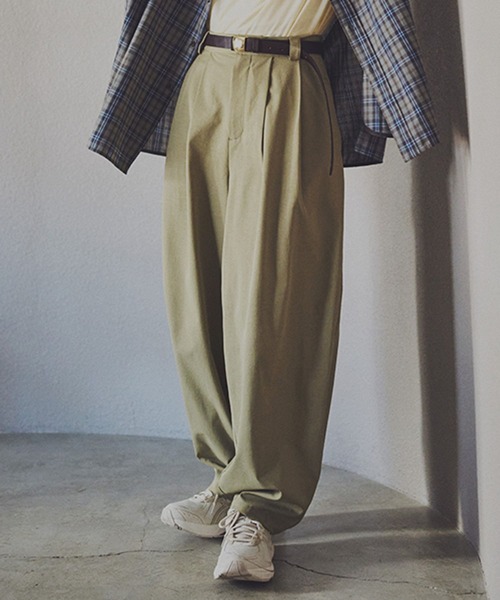 こなれ感のあるスタイリングが楽しめる一着2タックウエストで美シルエットが叶うワイドトラウザーーーー【素材】柔らかい風合いの素材を使用。さらっと軽く、履き心地も抜群です。【デザイン】シーズンムード漂うカラーリングが魅力のワイドトラウザー。ワイド感はありながら、ウエスト部分にタックが施されているのでスタイルをよく見せてくれます。また、しなやかな素材感になっているので、適度に肌離れし快適にご着用いただけます◎ーーー【スタイリング】コンパクトなシルエットのトップスと相性抜群です。大きめのサイズ感のシャツやTシャツと合わせてカジュアルな着こなしもおすすめです。