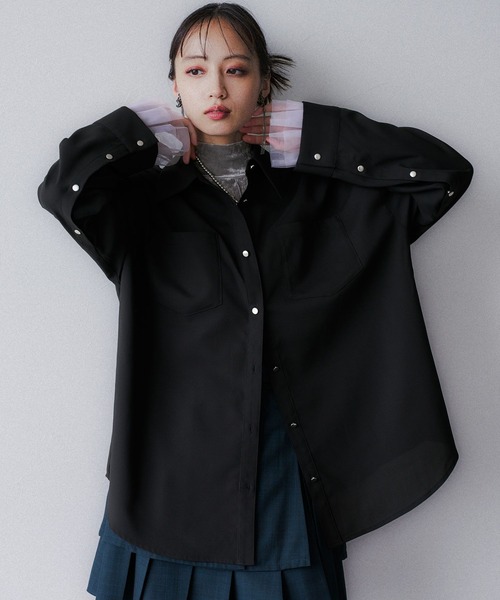 ーーー 袖下開きデザインとビッグシルエットがポイントの HAREらしいモードな長袖シャツ ーーー point □ボタンで袖下が開くデザインの2WAY長袖シャツ □ベーシックなカラーリングながら、メタルボタン仕様でHAREらしいモードさをプラス □ビッグシルエットかつチュニック丈のため、体型カバーができるデザイン □袖の開閉で気温調節が可能なため、ロングシーズンで着用が可能 □カラー別で風合いの異なる仕様 ・ブラック09、ミント80はリネン風素材で涼しげでカジュアルな印象に ・グレー11はツイード見えする素材を使用し、クールで高見えする印象に styling 骨格ナチュラル:袖を開けてシアートップスをレイヤードさせたスタイリングが似合います。ボトムスはデニムやカーゴパンツなどのカジュアルアイテムが◎ 骨格ウェーブ:ウエストラインをブラウジングしたメリハリのある着こなしが似合います。ボトムスはフレアスカートなど、フェミニンな着こなしが◎ 骨格ストレート:キャミソールなどのインナーに羽織で着用するなど、大人っぽい抜け感のある着こなしがオススメ。Iラインを意識した、ナロースカートやテーパードパンツ合わせが似合います。 ※加工を施した画像を使用しております。 実物と色味が異なる可能性があるため、色味は詳細後ろにある生地寄り画像を参考にお願いいたします。 あらかじめご了承下さい。