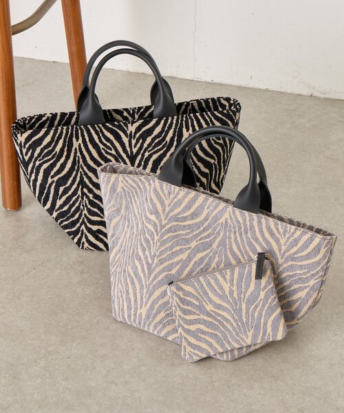 -商品ポイント-・上質感と存在感を兼ね備えたゼブラ柄のジャガード素材ハンドバッグ。・奥行きのあるジャガード素材は光の角度によって柄の表情が変わり、華やかで高級感あふれるアイテム。・マチ付きのしっかりとしたフォルムで自立しやすく、デイリー使いから旅行まで幅広いシーンに対応。・カジュアルからきれいめまで幅広くマッチし、ラフスタイルにプラスするだけでトレンド感のあるコーデが完成します。・小物や貴重品の整理に便利な同柄のミニポーチ付き。ー注意事項ー商品の画像はできるだけ実物に近い色味で掲載しておりますが、ご覧になるモニターや照明の環境により、実際の色味と若干異なって見える場合がございます。あらかじめご了承くださいませ。・画像の商品はサンプルです。実際の商品と仕様、加工が若干異なる場合があります。・サイズ表記はあくまで目安となります。__________________________________※取り扱いについては、商品についている品質表示でご確認ください。※照明の関係により、実際よりも色味が違って見える場合があります。またパソコン・スマートフォンなどの環境により、若干製品と画像のカラーが異なる場合もございます。予めご了承ください。※詳細画像の色合いをご参照ください。予めご了承ください。__________________________________【お買い物をよりお楽しみいただくために♪ 】▼ 商品のお気に入り登録お気に入りアイテムのお値下げ・再入荷・在庫ラスト1点など通知を受けることができます。▼ブランドのお気に入り登録Jena espace merveilleuxの新商品や再入荷、セール、クーポン配布などお得な情報を受けることができます。