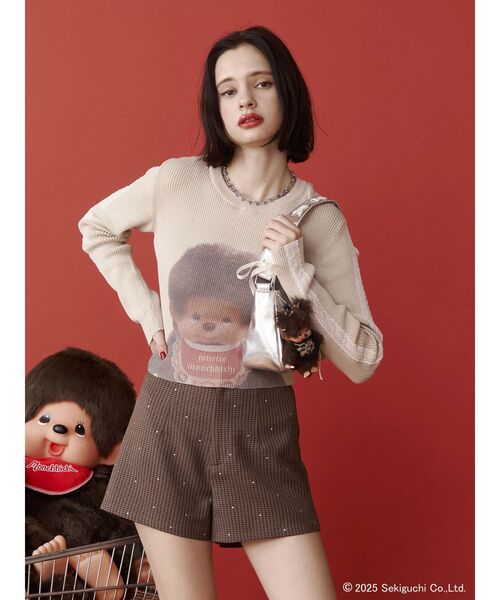 2024年に50周年を迎えたモンチッチとの初コラボレーション企画! <モンチッチ> 1974年に発売された、おしゃぶりポーズとそばかすが可愛らしいぬいぐるみ。 体はぬいぐるみ、顔と手足はソフビ製という斬新さと可愛らしい姿に、発売と共に爆発的ブームを起こしました。 「モンチッチ」というかわいらしいネーミングは、フランス語の「モン」(”わたしの”)と「プチ」(”小さく可愛いもの”)で「わたしのカワイイもの」という意味が込められています。 モンチッチのかわいらしい世界観をディテールに落とし込み、jouetieならではのアイテム展開になっています! 【ポイント】 モンチッチのフォトが大胆にプリントされたコンパクトニット。 カラーごとにスタイの配色が違うのもjouetieならではでかわいいです。 袖のレースやバックスタイルの「モンチッチ?」ロゴもポイント! 伸縮性のあるニット素材なので体のラインが出すぎず着心地も抜群です。 【スタイリング】 フォトが大胆にプリントされているのでトップスとしての着用はもちろん、アウターのインナーにもおすすめです。 袖のレースに合わせてレーススカートで甘めのスタイリングがかわいい! 短すぎない丈感でボトムスを選ばないのも嬉しいポイント! ※着用画像はフラッシュの加減で実際の製品と色味等が異なる場合がございますので、生地のズームアップ画像をご確認ください。 ※ご利用の端末画面の設定により実際の商品と色味が異なる場合がございます。 ※正しいサイズはアイテムサイズ表をご確認ください。 ※商品のお取り扱いについては、脇についている洗濯ネーム類をご確認下さい。 【jouetie ZOZOTOWN お買い物ガイド】 ▼商品をお気に入り登録! ♡をクリック! 完売商品の再入荷やラスト1点の通知、セール開始時にお知らせ! ▼"jouetie(ジュエティ)"をお気に入りブランドに登録! 新商品や再入荷など、ブランド最新情報をいち早くお知らせ!