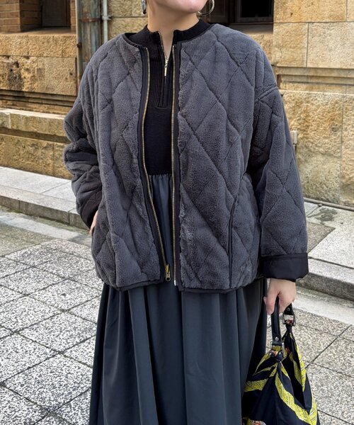 ファーとキルティングのリバーシブルで気分を変えて着用できるジャケット ■point なめらかなファー素材とキルティング素材がリバーシブルになった2WAYジャケット。 カジュアルなスタイリングからきれいめなスタイリングまで幅広く活躍するアイテムです! 袖を折り返して異素材部分を見せてもこなれ感UP♪軽くてデイリーユース間違いなしです◎ ■coordinate パンツにもスカートにも合わせやすいベーシックな丈感で、カジュアルにデニム合わせも◎ ナロースカートやフレアスカートなどエレガントにスタイリングして頂くのもおすすめです! ▼オススメスタイリング▼ 【撥水加工】トリケアロゴプリントロンT 軽量ボンディングドロップスリーブプルオーバー シャギーロゴJQニット 後ろギャザーデザインデニム ベロアナロースカート ベルト付きタックワイドパンツ ビスチェニット×ニットワンピース ■fabric 表側:ポリエステル100% 裏側:ポリエステル100% 詰物:ポリエステル100% -------------------------------------------------- 裏地:あり 光沢感:なし 伸縮性:なし 生地の厚さ:厚め 洗濯方法:洗濯不可 -------------------------------------------------- ※生産の都合上、お届け時期が前後する場合がございます。 ご注文いただいた予約商品のお届け時期の確認は、注文履歴ページより行えます。 ※商品画像は製品前サンプルにより着用イメージです。 光や角度により、実物と色味が異なる場合がございます。また表示のサイズ感も実物とは若干異なる場合もございますので、ご了承ください。 ※着用、お取り扱いの際は、商品についている品質表示とアテンションタグを必ずご確認ください。 -------------------------------------------------- ♡をクリックでお得な情報をお知らせいたします。 <商品お気に入り登録> お気に入りアイテムのお値下げ・再入荷・在庫ラスト1点など通知を受けることができます。 <ブランドお気に入り登録> Chez toiの新商品・再入荷・SALE・クーポン配布などお得な情報を受けることができます。 -------------------------------------------------- Cheztoi/シェトワ フランス語で「あなたの家」という意味。 自分にまっすぐでそしてしなやかに生きる女性に向けたブランドです。