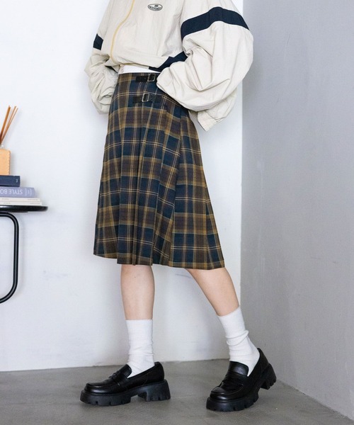 毎年完売する超大人気のプリーツスカートが今年も登場◎ ベーシックに着られる、定番のLONGサイズ、 レイヤードや韓国ライクにもぴったりのMIDDLEサイズの、2サイズを今年もご用意致しました。 ■おすすめの着こなし ☆MIDDLE(Mサイズ)を着るなら・・・ そのまま着用いただくのはもちろん、デニムやスラックスなどにレイヤードするのもおすすめ。 ミドル丈なので綺麗目になりすぎず、トラックジャケットやスニーカーを合わせたカジュアルな着こなしにもぴったり。 短すぎない程よい丈感なので、大人な着こなしにもおすすめです。 ☆LONG(Lサイズ)を着るなら・・・ ショート丈のニットやコンパクトインナーなどと合わせて、すっきりと着ていただくのがおすすめです。 スウェットなどと合わせたカジュアルな系統もお手の物。 シャツを合わせれば、王道の綺麗目スタイルも◎系統を問わず着用していただけます。 デニムやスラックスをレイヤードした今年らしいスタイルも◎ ーーー ■ポイント 毎年完売必至の超大人気のチェックプリーツスカート。 綺麗にひrがるプリーツで、大人でも着やすいシルエットに。 サイドにあしらったフェイクWベルトがアクセントになるので、インスタイルが映えるのも嬉しいポイント。 ウエストはバックゴム入りなので、長時間履いても楽な着心地です。 広すぎないゴム幅が、タックインスタイルを綺麗に見せてくれます。 鮮やかなチェック柄が目を惹き、コーデが映えること間違い無しです◎ ■素材 程よく厚みがある生地感でオールシーズン着まわせます。 シワになりにくいので、自宅でのお手入れも簡単◎