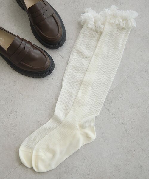 今季トレンドのロマンティックなレースハイソックス。さらりとした肌触りのコットン混素材で伸び良くソフトな履き心地がポイントです。フェミニンな透け感を演出するストライプシアーに大胆なフリルがアクセント使いにぴったり。ショート丈のボトムスやオーバージャケットと合わせて旬なスタイリングをお楽しみいただけます。※モデル着用画像は光の当たり具合で色味が違って見える場合がございます。商品の色味は物撮りの画像をご参照ください。● earth music&ecology ●(アースミュージック&エコロジー)「いいことある服。」たかが服。されど服。波風の多い日々のなかでもほほえんで前を向くあなたを、つつんで一緒に歩きたい。 いいことあるかも。そんな期待までまとえる服をあなたに。earth music&ecologyは、毎日を頑張る女性たちをちょっと前向きにするブランドです。 ▼ 商品のお気に入り登録がおすすめです ▼商品ページ内の「♡」ハートマークをクリック。完売時の再入荷や、最後の1点の通知、コーディネート画像がアップされたとき、お得なお値下げの際の通知を受ける事ができます。【お知らせ】ページでも通知が確認できます。