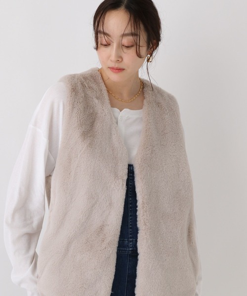 \羽織るだけで旬顔に!大人のファーベスト/【悩みに“効く”ポイント】ふわっとした毛足のフェイクファー素材がシーズンムードを先取り。Vネックのシンプルデザインがどんなコーデにも馴染む優秀アイテム。前後差のある立体フォルムで、体型をカバーしながらスタイルアップを。いつものスタイリングにプラスするだけで、旬な着こなしが完成♪【シルエットの魅力】・後ろを長めに設定し、シルエットに立体感をプラス。・お腹周りをカバーするジレデザインで安心して着られる一枚。・ふわっとしたボリューム感が優しく柔らかい印象を与えます。【スタイリング】・Tシャツに羽織るだけで旬顔にアップデート。・デニムやパンツと合わせて大人カジュアルなコーデに。・シャツやブラウスと組み合わせて少しきれいめなスタイリングにも◎。【お手入れのご注意】引っ掛けには十分ご注意ください。多少毛が抜けることがありますのでご了承ください。------------------------【お気に入り登録のおすすめ】■商品のお気に入り(♡)登録┗完売カラーの再入荷通知や、完売間近の通知、ZOZO店のみのセールなどの通知を受けることができます。■ショップのお気に入り(♡)登録┗新商品や再入荷など、いち早くブランドのお得な情報を受け取ることができます。------------------------
