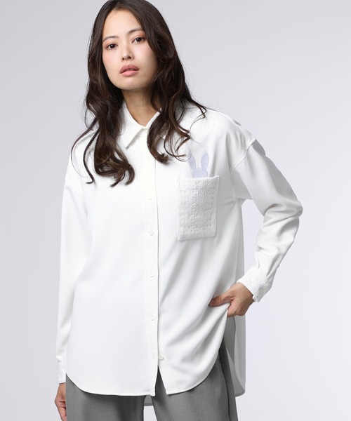 【生地】 ポリエステル100%の生地を使用しています。 シワが付きにくく、アフターケアが簡単。 肌触りの良いサラッとした素材なので暑さが残る季節でも快適に着用いただけます。 【デザイン】 レース生地を部分使用し、レディースらしさをもたせたポケットバニーシリーズのカジュアルシャツ。 バニーを生地と同色の刺繍にしたことで、大人っぽさもプラス。 一枚でも、羽織としても使用できる2WAYタイプです。 使い方やコーディネート次第で通年楽しくご着用いただけます。 ▼お気に入り登録機能▼ 商品ページの♡マークを押していただくと、在庫が残り少なくなった時や再入荷情報、お値下げ情報の通知を受け取ることができます。 ぜひご利用ください。 ▼ブランドのお気に入り登録▼ 新商品や再入荷など、いち早くブランドのお得な情報を受け取ることができます。 ぜひご利用ください。 カジュアルシャツ/レース/ロゴ/ワンポイント/ポケバニ シンプル/ベーシック/カジュアル/ギフト/プレゼント