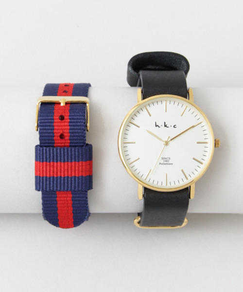レザーベルトとナイロン素材のベルトの付け替えを楽しめる腕時計の登場です! 文字盤は人気の大き目サイズなので、手元のオシャレを楽しんでいただけますよ♪ 服装によって、レザーベルトでシックに、ナイロンベルトのカラーをポイントにしてカジュアルに、 その日の気分で付け替えをしてください。 ベルトの付け替えの際に、時計の滑り防止に二重構造になっているのも安心です。 ベルト部分が浮かないように、ベルト通しを太目にしているので、男性にも女性にも使って頂けます。 カジュアル用の時計しか持ってなく、冠婚葬祭の時に困っていた方、お仕事用の時計しかなく、カジュアルに似合う時計を探していた方、腕時計をあまりされない方… 2通り楽しめる腕時計おススメです。 店舗にてお問い合わせの際は、下記の品番をお申し付け下さい。 品番:6431