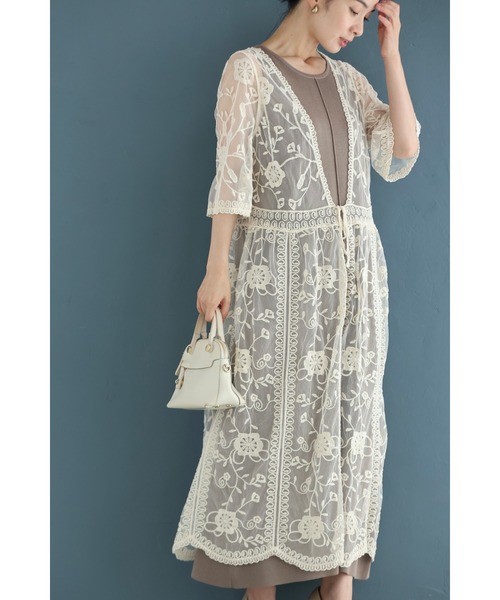【CAWAII】「二の腕までカバーする蔦花刺繍ベールカーディガン」■纏えば上品さがプラスされる刺繍ベール繊細な蔦花モチーフの刺繍が施されたチュール素材のベールカーディガンは、透け感がありながらも上品な雰囲気を纏わせ、いつもの装いに特別感をプラスしてくれます。■透け感のあるチュール素材ほんのりと肌を透かす繊細なチュール素材は、軽やかさと女性らしさを両立。透け感が美しく、刺繍の模様を引き立てながら、奥行きのある上品なレイヤードスタイルも叶えてくれます。■二の腕隠れる五分袖五分袖デザインで、気になる二の腕をふんわりとカバー。肌を隠しながらも重たくならない絶妙なバランスで、涼しげな印象をキープできます。【ショップのお気に入り登録】新作アイテムやセール通知、お得な情報を受取ることができます。ぜひご登録ください。 【商品のお気に入り登録】気になるアイテムは《お気に入り登録》がオススメ!入荷情報やクーポン情報、再入荷通知やラスト1点の通知などお得な情報を受け取ることができます。≪CAWAII(カワイイ)/ FRENCH PAVE(フレンチパヴェ)≫「他には無いカワイイが見つかる」「非日常を日常に」「自分の人生は自分で描こう」をコンセプトに展開している芦屋発のレディースブランド。流行にとらわれ過ぎない独自の世界観で、他にはないような個性的なアイテムを数多く取り揃えております。10代、20代、30代、40代、50代の幅広い年齢層にご利用いただいております。※お使いのディスプレイにより色味が異なって見える場合がございます。