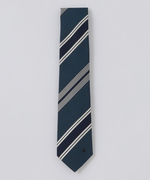 【カラーペーンがアクセントのレジメンタルタイ】シルク100%を使用したレジメンタルタイ。カラフルな配色のレジメンタル柄が、ビジネススタイルに華やかさを与えます。裏地にはジャカードで表現したブランドロゴを配置し、細部までこだわった逸品です。※掲載写真と柄の出方が異なる場合がございます。