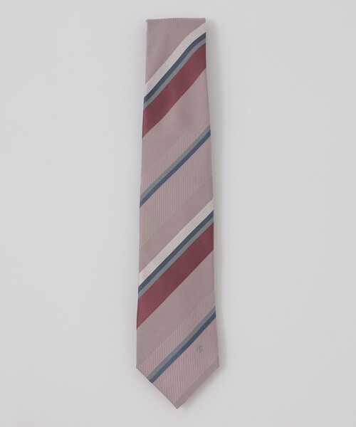 【カラーペーンがアクセントのレジメンタルタイ】シルク100%を使用したレジメンタルタイ。カラフルな配色のレジメンタル柄が、ビジネススタイルに華やかさを与えます。裏地にはジャカードで表現したブランドロゴを配置し、細部までこだわった逸品です。※掲載写真と柄の出方が異なる場合がございます。