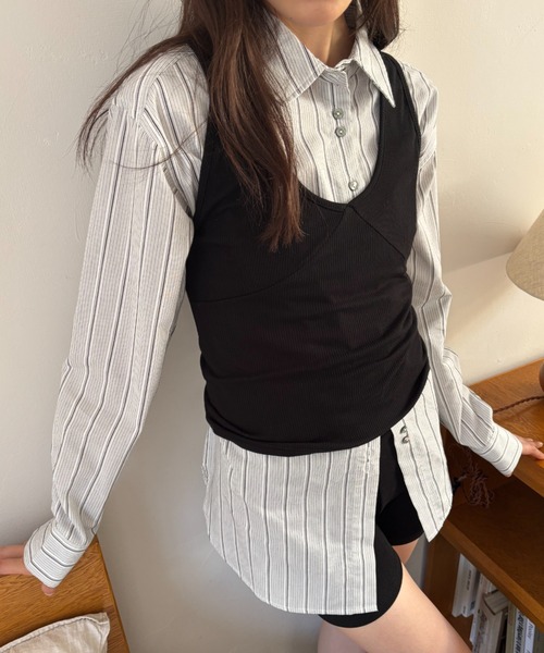 〈 FUULLY STUDIO BESIC COLLECTION 〉〈 Design Point 〉ビスチェ風の切り替えを施したさりげないデザインが魅力のタンクトップ。ドライタッチな肌触りでカジュアルさも加えてメリハリのある一枚。色んなスタイリングにマッチします。〈 Styling 〉キャミソールの上から着用してヘルシーなスタイルから秋口はカットソーを差し込んで着用するのはおすすめ。柄やカラーでアクセントをつけても◎いつものスタイリングにプラスして新鮮なスタイリングを楽しんで。シーズンレスで着用できるのも嬉しいポイント。〈 Size 〉FREE サイズ〈 Detail 〉レーヨン95%、ポリウレタン5%ドライタッチな生地感で落ち感のある素材でシャープにやや張り感のある素材は伸縮性があり、しわになりにくいです。透け感:なし伸縮性:あり裏地:なしケア方法:ご自宅でお洗濯可能です。ネットに入れてドライ(おしゃれ着洗い)にてお洗濯ください。※濃色品は多少色落ちする可能性がありますのでお洗濯のさいは、淡色のものとは別にお洗い下さい。※濃色品は漂白剤入り、または漂白剤成分のある洗剤の使用はお控えください。※照明の関係により、実際よりも色味が違って見える場合がございます。※商品に付いている商品表示とアテンションタグをご確認の上、着用・お取り扱い下さい。〈 FUULLY STUDIO 〉 -フーリィースタジオ-「そぎ落としたクラシックをベースにフェミニンさとユーモアさの遊び心あるアクセントを加えた洋服で、あなたを満たす一枚」をテーマに、キュートで愛おしさを表現する柄やカラー、シルエットを落とし込んだ洋服を提案するレディースブランド。クラシカルでベーシックなアイテムとフェミニンなアイテムを融合させたスタイリングで、凛とした女性の中の愛おしさを表現しています。〈 公式Instagram 〉@FUULLY_STUDIO新作アイテムの情報やおすすめ商品を随時UPしております。是非チェックしてみて下さい。----------------------------------------------------〈 お買い物をよりお楽しみいただく為に 〉・商品のお気に入り登録♡をクリックして気になるアイテムをお気に入りに登録していただくと完売カラーの再入荷や、ラスト1点の通知、セールの際の通知を受ける事ができます。ブランドのお気に入り登録もご一緒にお願い致します。