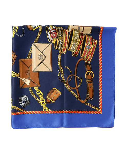 グッズ柄の大判スカーフ。首やヘッドアクセサリーのように頭に巻いたり、バッグのハンドルに結ぶなど、コーディネートのアクセントにぴったりです。シーズンレスで取り入れやすいのも嬉しいポイント。 ※モデルの着用画像の場合、光の当たり具合により、実際の色味と異なって見えることがございます。色味は、商品単体の画像をご参照ください。