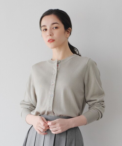 「Strawberry Thief(ストロベリー・シーフ)」のリバティプリントをあしらった、アフタヌーンティー別注カラーのカーディガンです。フロントのくるみボタンや後ろ前立てにさりげなくプリントを施し、上品なアクセントを加えました。鳥やイチゴなどのモチーフを組み合わせており、見ているだけでも楽しいデザインです。軽量で持ち運びもしやすいので、屋外での日差し対策や、室内での冷房対策にも便利。上品な雰囲気のカラーを基調にしており、幅広いコーディネイトにマッチします。同じシリーズのシャツと合わせて着用するのもおすすめです。*濃色製品は色落ちしますので他のものと分けて洗濯してください。*洗濯前のつけ置きや濡れたままで長時間放置しないでください。*洗濯の際はネットを使用してください。*アイロンを掛ける際はあて布を使用してください。*1点ごとに柄の出方が違うことがあります。