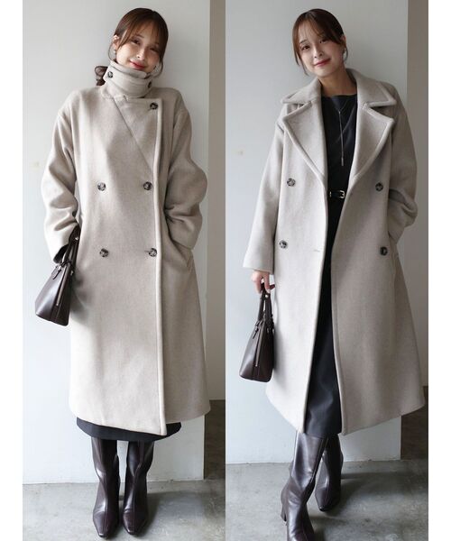 襟まわりの雰囲気に変化を付けられる、上品ながらもモードにも着用できるアウター ■デザインポイント 昨年人気のウールコート。 今年はS、Mの2サイズ展開になり丈感、サイズ感が選べるようになりました。 ベーシックなダブルロングコートは衿を立ててスタンドカラーとしてもお使いいただけます。 バージンウールを使用した二重織ウール素材のコートです。 スタンドカラーで着用いただくとモードな印象に、 あけて着用頂くとクラシックなダブルコートとして、どちらも決まりの良いコートです。 【修正コメント】 MOCの生地飛び込み(大きめな黒い斑点)なくなります。 袖丈2センチ長くなります。S、Mサイズ着丈差寸6センチです。 ■スタイリングポイント ・カジュアルスタイリングはもちろん、ワンピースなどの女性らしいスタイリングにも◎ ・スタンドカラーで着用する時はパンツスタイルでモードな印象に --------------------------------------------------- 透け感:なし 裏地:あり 生地の厚さ:厚手 洗濯:×伸縮性:なし ポケット:あり ジップ:なし ---------------------------------------------------【 ZOZOTOWNでお買い物を楽しむ便利機能 】♡商品のお気に入り登録完売カラーの再入荷時、ラスト1点の時、セール開始時にお知らせします。予約アイテムが入荷して通常販売になった時もお知らせしてくれます!その他お得な通知も盛りだくさんです。 ♡ブランドのお気に入り登録新商品や再入荷、セール情報など、いち早くブランドのお得な情報を受け取ることができます。ぜひご活用ください!