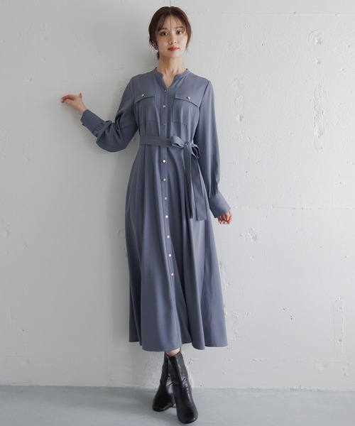 WEB LIMITED金ボタンをアクセントにしたサファリデザインワンピースがWEB限定で登場。無駄のない洗練された雰囲気に、柔らかな素材を掛け合わせた知的でレディな一枚。■デザイン顔回りがすっきり見えるスキッパーネックと胸ポケットで目線を上げ、ウエストを高めの位置で切り替えスタイルアップも期待できます。スカートのシルエットはフレアで女性らしく、体型カバーされるのも嬉しいポイント。■生地さらりとした落ち感のある生地で、着心地と肌離れの良さも魅力です。きれいめな表情を持ち、普段使いでもきちんとした雰囲気に。面談や行事などにも。■コーディネートウエストは共地のベルトつき。シルエット変化を楽しめます。羽織りアイテムを足せばロングシーズン活躍。足元はエレガントなパンプスから、秋冬はブーツ、タイツ合わせと幅広く楽しめます。※屋内外の光や照明の当たり具合で、実際の商品の色味とカラー別画像の色味に違いが発生する場合がございます。色味はスタジオ撮影の詳細画像にてご確認ください。※生地の寄り画像が最も実物に近い色味となります。ーーーーーーーーーーーーーーーーーーーーーーー▼ 商品のお気に入り登録 ▼完売カラーの再入荷通知や、ラスト1点の通知、クーポン開始、セールの通知も受け取ることができます。▼ ブランドのお気に入り登録 ▼新商品や再入荷など、ブランドのお得な情報をいち早くお知らせ!ぜひご登録ください!
