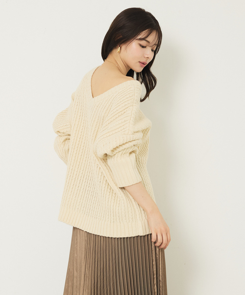 女っぷりも気分も高まる先取りニット!【Design】ザックリの編み目が女心をくすぐるローゲージニット。ポンチョ感覚で早めから使えるよう首元を広めに開け、Vネックとボートネックが選べる2WAY仕様です。【Fabric】透け感等はなく、冬ならシャツなどの上に重ね着しても◎化繊なので暑すぎず長いシーズン着用出来ます。【Styling】単品ではもちろん、シャツに重ねたり、ワンピの上にポンチョ感覚で着るのも◎首の開きが広めなのでオフショルでも着用出来ます。**********************透け感:なし裏地:なし伸縮性:あり光沢感:なし生地の厚さ:普通**********************