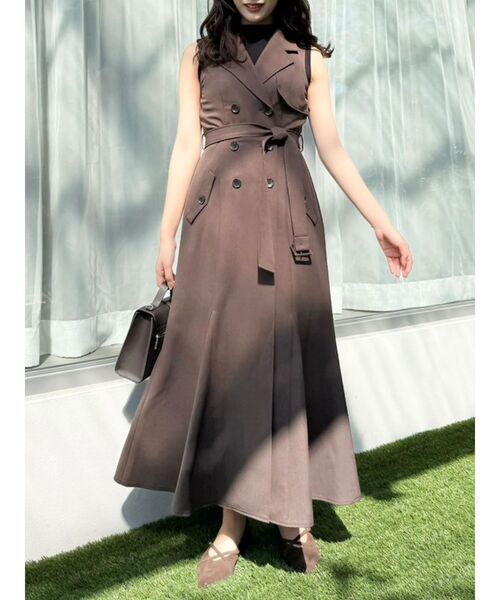 【商品】クラシカルなトレンチデザインをジャンスカに落とし込んだ、ナローシルエットで落ち付いた印象に仕上げてくれます。ニット合わせメインになる時期なので相性の良い合繊素材を使用してまとまりのあるコーデが手軽に作れます。【スタイリング】インナーには、ニット全般は勿論フリルブラウスやピエロカラーのトップスを合わせて、襟元に華やかさをプラス。秋の立ち上がりには、ショート丈のジャケットやニットカーデを羽織って、季節感を取り入れたレイヤードスタイルがおすすめ。【 お買いものにおすすめの便利機能! 】★商品のお気に入り登録完売カラーの再入荷時や、ラスト1点の時、セール開始時にお知らせします。★ブランドのお気に入り登録新商品や再入荷、セール情報など、いち早くブランドのお得な情報を受け取ることができます。ぜひご活用ください。※実際にお届けする商品と仕様やサイズが異なる場合がございます。また生産の都合上、お届け時期が前後する場合がございます。