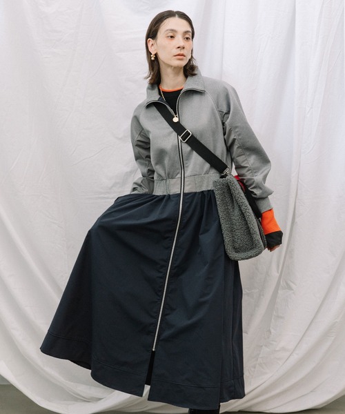 ■2025 AUTUMN WINTER collection■ モード×スポーティー×上品なジップワンピース シンプルながらトレンド感を兼ね備えた一枚で決まる主役級アイテム ワンピースとしても、軽やかな羽織りとしても活躍する、着回し力抜群のジップアップワンピース。 トップス部分にはポンチ素材を、スカート部分にはエアリーな素材を使用し、異素材のコントラストが奥行きと立体感を生み出します。 前を閉じれば端正なワンピースに、ジップを開ければ軽やかなロングアウターとして、シーンに合わせて自在に表情を変える一枚です。 【DESIGN】 ■トップスとスカートとの異素材コンビネーションがモードな雰囲気に導く ■袖下をスカートと同様の素材で切り替えアクセントをプラス ■スカート部分のボリュームのあるフレアーラインにウエストをリブで切替え、メリハリをつけたシルエット ■ウエストは、リブ部分の中に平ゴム入り ■フロントのロングZIPとハイネックのリブがシャープな印象 ■羽織りとしても着用可能 ■両サイドポケット有り 【MATERIAL】 (表地: トップス) ストレッチの効いた膨らみのある薄手ポンチ素材を使用 ・手触りがすべらかでハリがあり、シワができにくく、高級感がある素材 (別地: スカート) マットでエアリーなポリエステルタフタ素材を使用 ・軽量で柔らかくシワになりにくくお手入れもしやすい (別地: 衿ぐり / 袖口 /ウエスト) 伸縮性が高い柔らかい肌触りの良いリブ素材を使用 -------------------------- 裏地:なし 光沢感:微光沢あり 透け感:なし 伸縮性:あり 生地の厚さ:中肉厚 ケア方法:ホームクリーニング(手洗い) -------------------------- ◆お取り扱いについては商品についております品質表示にてご確認下さい。 *光のあたり具合いやパソコンなどのモニター環境によって実際の色味と異なって見える場合がございます。予めご了承ください。 *撮影時はサンプルの為、若干のデザイン変更等ある場合がございます。予めご了承ください。 <INFORMATION> ◆商品のお気に入り登録お気に入り登録していただいた商品は、完売商品の再入荷通知やラスト1点の通知、またクーポン発行やタイムセールの通知もお届け!ぜひご登録してください。 ◆ショップ・ブランドのお気に入り登録新商品や再入荷、ショップ・ブランドのお得な情報をいち早お届け!ぜひご登録してください。