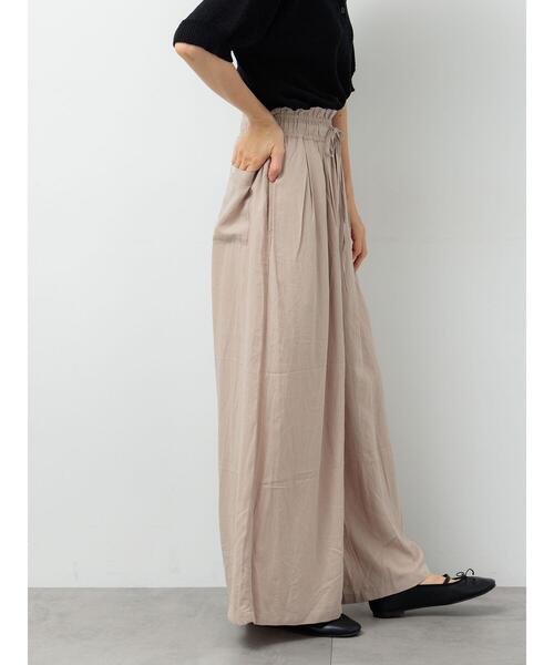 柔らかな落ち感とフレアなシルエットが魅力のイージーパンツ。ゆとりあるワイドシルエットでリラックスムードを漂わせます。ウエストはゴムギャザー仕様になっていて、安心感のある穿き心地◎肌触りの良い麻レーヨン素材で快適に着用することができるアイテムです。※商品画像は、撮影環境やお客様のご利用のPC・スマートフォンのモニター環境などにより実物と色味に差異がある場合がございます。【その他採寸】F ウエスト:[ゴム仕様]64cm