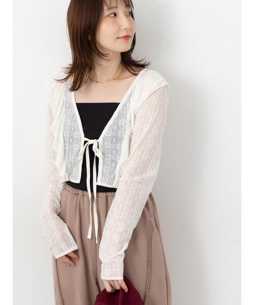 繊細なカットレースデザインで大人上品に仕上げたボレロカーディガン。 ほんのりとした透け感が女性らしさをプラスします。 シンプルなインナーやワンピースなど、様々なレイヤードスタイルにマッチする万能アイテムです。 ※商品画像は、撮影環境やお客様のご利用のPC・スマートフォンのモニター環境などにより実物と色味に差異がある場合がございます。