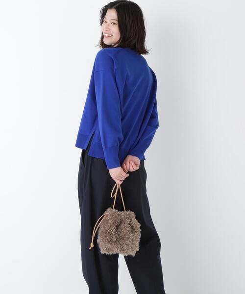 コーディネートが華やぐ、キャッチーなフェイクファーバッグ 【デザインのポイント】 フェイクファーで仕上げたドローストリングバッグです。フェイクレザー使いもポイントです。 350mlペットボトルがすっぽり入るサイジングでおつくりしています。 【素材のポイント】 高級感のある毛並みのフェイクファー生地を使用しています。 底とドロスト紐は今年らしいスエード見えフェイクレザーを使用しています。 【おすすめコーディネート】 シンプルな装いに存在感と季節感を演出できるバッグです。 【お買いものをよりお楽しみいただく為に】 ■商品のお気に入り登録 再入荷・残り1点・セールの通知を受け取ることができます。 ■ブランドのお気に入り登録 新商品・再入荷/タイムセールやクーポンなどの ブランドの情報を受け取ることができます。 ------------------------------------------- 【human woman】 1998年よりスタートした”フレンチトラッド”をベースにした大人な女性のためのカジュアルブランド。 素材や縫製にもこだわってつくられた上質な日常着は、長い時間大切にお使いいただけるようにお作りしています。 約20年の歴史の中で、「数年着続けても安心感があるお洋服」と多くの方に高いクオリティを認められてきました。 ベーシックなアイテムにさりげなく加えたトレンド感で、「私らしいカジュアルスタイル」を見つけてみませんか。 「カジュアルが好き」「少しだけトレンドも取り入れたい」 「大切に着たい」「私らしくいたい」そんな思いをかなえるお洋服をhuman womanでは提案しています。 -------------------------------------------