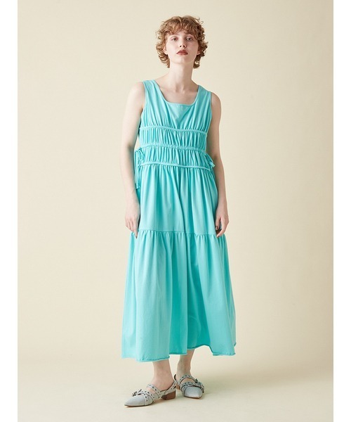 天竺カットソー素材のワンピース。暑さ残る初秋には1枚でも着用でき、肌寒くなったらニットカーディガンも羽織やすいノースリーブで作成しているので、長いシーズン楽しめるアイテムです。女性らしさのあるデコルテが綺麗に見えるスクエアネックラインと、ふんだんに施されたティアード切り替えやフレアシルエットが華やかに見えるので、ちょっとしたお出かけシーンにもお勧めです。透け感;なし裏地;なし伸縮性;あり光沢感;なし生地の厚さ;やや薄手※照明の関係により、実際よりも色味が違って見える場合があります。またパソコン・スマートフォンなどの環境により、若干製品と画像のカラーが異なる場合もございます。予めご了承ください。商品の色味は、商品単品画像をご参照下さい。 ※商品画像はサンプルのため、色味やサイズ等の仕様に変更がある場合がございますので、予めご了承ください。