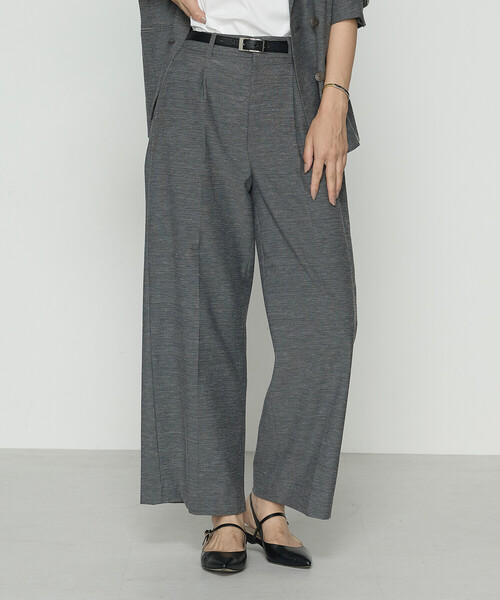 《デザイン》ワンタックからセンタープレスでたてラインを強調してくれます。脇線を少し前に振り、前パンツを細くすることで細見え効果が期待できるシルエットにしています。前側はきちんと感を出したベルト仕様です。後ろはウエストをゴム仕様でエフォートレスな着心地をプラスしています。《素材》ナチュラルな表情と軽さのある風合いが特長の麻混オックス素材です。たてにポリエステル、よこに綿麻混紡糸を使用し、それぞれを染めることで先染め風にシャンブレーを表現し、深みのある色合いです。織目の粗いオックス組織に、染前と染後に二回のタンブラー加工を施すことでナチュラルでラフな雰囲気に仕上げています。ストレッチ性があり、手洗い可能で夏に最適の素材です。《セットアップ》同素材のジャケット(商品番号:15-02GM04-205)と合わせてセットアップとしてお召しいただけます。※在庫がない場合もございますので、予めご了承くださいませ。