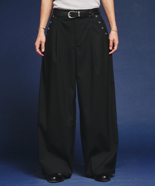 【セットアップ対応】Eyelet-Detail Assorted Two-Tuck Wide Slacks / ハトメデザインアソート2タックワイドスラックス